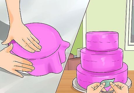 Use fondant to give your cake a smooth, finished look. Fondant is a sugar based paste that can be compared to play dough in consistency. Due to its pliability, its uniform texture, and its ability to be dyed any color, fondant is frequently used by cake masters to finish cakes or fashion decorative shapes, like flowers, figures, and ruffles. You can mix your own fondant, though it may be easier for you to buy a pre-made batch. Then you can drape it over your cake or shape it into designs.