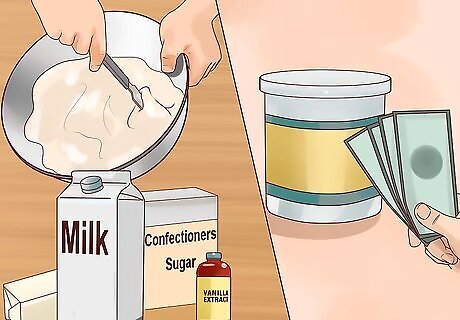 Make or buy your frosting. As aforementioned, you might want to avoid buttercream, cream cheese frosting, or any frosting that might spoil easily if the venue cannot ensure temperature control. Fondant and marzipan are excellent options, though you should inform the bride and groom whenever you use nut products, like marzipan, as this is a common allergy. A simple vanilla buttercream frosting recipe could be made by beating together in a mixing bowl:Softened butter (½ cup)Confectioners' sugar (4½ cups)Vanilla extract (1½ teaspoons)2% milk (5 to 6 tablespoons)