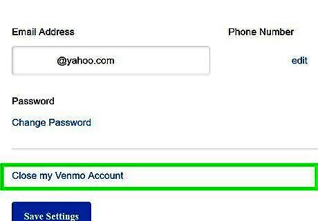 Click Close my Venmo Account. You'll find this at the bottom of the page above the blue "Save Settings" button.