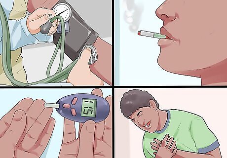 Identify your risk factors. In addition to the symptoms of PAD, you should also be aware of the potential risk factors that might increase the chance you have the disease. The risk factors for PAD include: Smoking Age Diabetes High blood cholesterol High blood pressure Heart disease Stroke.