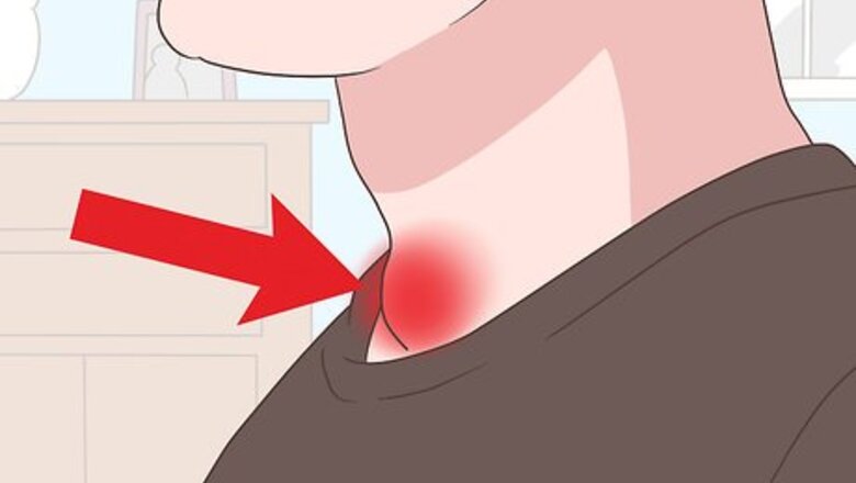 Check for a lump on the front of your neck. A lump in the neck is the most distinctive symptom of thyroid cancer. The lump is located low on the front part of the neck, near where the neck meets the collarbones. The lump may be visible, or you may be able to feel it when you touch your neck. See your doctor immediately if you develop a lump in your neck. In some cases, you may notice an overall swelling of the lower front part of your neck, instead of a well-defined lump. The lump may appear suddenly or grow rapidly. Most neck lumps are caused by non-cancerous conditions, such as an enlarged thyroid gland or goiter. The lump is more likely to be caused by cancer if it is hard or firm to the touch, does not move easily when touched, and grows over time. Thyroid cancer may also cause swollen lymph nodes in your neck.