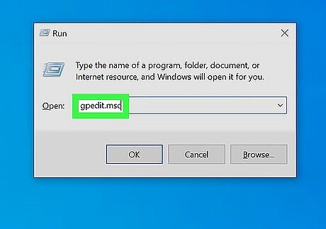Open the group policy editor. To do so, press the Windows key + R, type gpedit.msc, and then click OK.