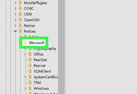 Use the tree on the left to navigate. Expand it to HKEY_LOCAL_MACHINE\SOFTWARE\Policies\Microsoft. If you want to disable history deleting for just a specific user instead of all users, log into that user's account and select the HKEY_CURRENT_USER key instead of HKEY_LOCAL_MACHINE.