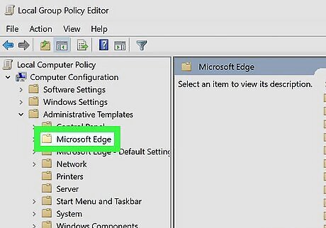 Navigate using the directory tree in the left frame. Expand the folders to open the following location: Computer Configuration\Administrative Templates\Microsoft Edge. If you want to disable history deleting for just a specific user instead of all users, log into that user's account and select the User Configuration folder instead of Computer Configuration.