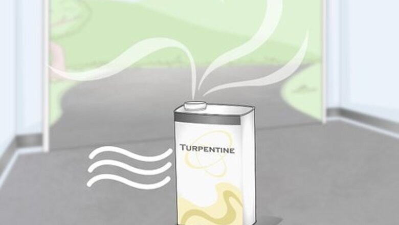 Lay out turpentine soaked items in a cool, well-ventilated area. Place rags, containers, and any other items that have turpentine on them on a non-absorbant surface out of direct sunlight. Try to get rags as flat as possible, so that they can dry out. A shady spot outside or a garage with an open door is a good location to do this. Turpentine fumes are flammable and toxic to breathe in high concentrations, so it's important to let it evaporate in a well-ventilated area.Tip: Put your items on concrete or steel, as these are flame-resistant materials that won't be ruined by coming into contact with turpentine.