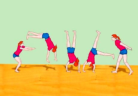 Practice as much as you can. The more repetitions you do, the better you will get. Repetitions can also help build your confidence. Practice on a mat or springboard at first. You will definitely fall a few times before you get the hang of it. If you are struggling with a certain aspect of the round off back tuck, focus your practice to that area. For example, if you want to improve the speed at which you bring your legs down during your round off, do a handstand and practice snapping your legs down as fast as you can.