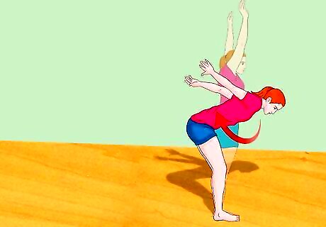 Jump in the air. As you swing your arms, extend your legs and jump. Fully extend your body before you begin to tuck your legs. Look straight ahead as you are jumping and keep your eyes on the focal point that you have chosen. Exhale as you jump Keep your abdominal muscles tight as you jump.