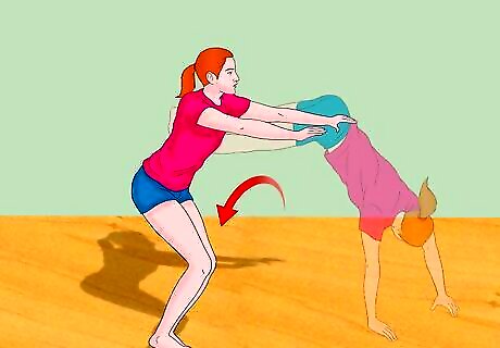 Have someone spot you. If you are trying a round off back tuck for the first time, have someone spot you. A spotter can help you through your back tuck motion, point out your errors, and suggest adjustments to improve your round off back tuck. As you get better, your spotter will make gradual changes until you can do the round off back tuck completely on your own. Work with an experienced spotter who has helped someone before. A spotter can also give you confidence if you are scared about doing the back tuck portion.