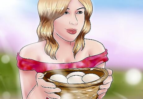 Hide eggs in easy places for children five and under. Toddlers and young children will probably have the most fun if you hide eggs in easy to see places low enough for them to reach. Place them in plain sight in the corner of the floor, in Easter baskets on top of short tables, or on top of flower pots low to the ground without much leaf cover. You might want to wait until the egg hunt begins to place eggs directly on the floor, or someone might step on them. Children under three probably won't notice even if you "hide" the eggs while they are in the room.