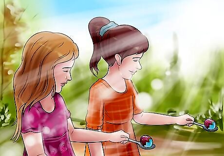 Turn the Easter egg hunt into a treasure hunt. Instead of letting the kids loose to find all the eggs at once, give them clues to each egg in turn. For a real "treasure hunt" feel, write the next clue inside each egg, and have the last egg hold gold chocolate coins as "pirate treasure." The clue could be a riddle, a hidden reference to an object in another room, or a reference to something the kids did once. For instance, an egg hidden in "the jungle" could be in the center of some houseplants, while an egg hidden "in the land of birthday cakes" could be on a cake stand in the fridge.