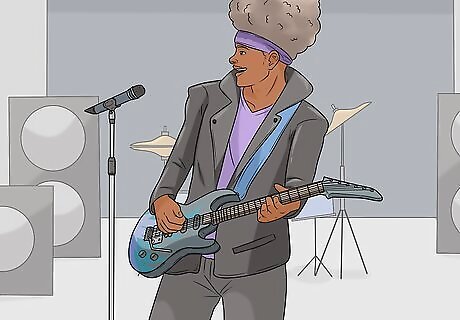 Pick outfits that help you stand out. When you're on stage, you shouldn't be wearing what you would to go to the grocery store. It should feel put-together in some way. That doesn't mean you need to wear a coat and tie! However, it should tell the audience a little bit about who you are even before you start playing. For example, for a heavy metal band, you might opt for leather and metal, while for a rock and roll band, maybe you want torn jeans and metallic t-shirt. Go a little crazy. You're allowed to pick out something you wouldn't normally wear to help you stand out.