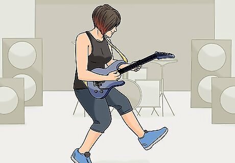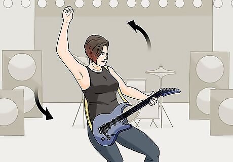 Change your position on stage and point your guitar in different directions to mix it up. Don't always point the end of your guitar off to the left of the stage. Sometimes, you can turn it toward the crowd so that you're sideways to the audience. You can also turn it to the back so you're sideways going the other direction. This just adds visual interest to your performance. You're not just standing there, still as a statue. You could also tip the neck up and play it that way for a while or lean over and play it downward toward the crowd.