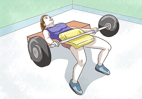 Use a low bench that's roughly 16 inches (41 cm) tall. If the bench is too tall, you won't be able to properly perform the hip thrusts, so make sure the top of the bench isn't above your shoulders when you sit down on the floor. It's also important that the bench is stable and won't move around. If you're shorter or taller than most people, you may need a bench that's a little bit shorter or taller. If your bench isn't stable, push it up against a stable wall so that it doesn't move around.