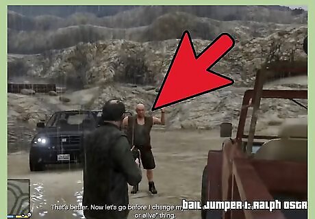 Find Ralph Ostrowski. He is located in the David Quartz quarry, which is southeast of Trevor’s safehouse and southwest of Maude’s home. Stay at a distance and zoom in through your sniper rifle scope to identify the target, who is standing next to a black Landstalker. Shooting him in the leg will cause him to surrender. Drive him back to Maude’s home and drop him off, then check your phone for the next email from Maude. If you catch his attention or fail to shoot him in the leg, he will try to escape by driving away in the Landstalker. This will make it more difficult to get him to surrender, but you can still do so by shooting two of his tires. Try not to shoot at the gas tank, however, since doing so can cause the vehicle to ignite and explode, resulting in his death and a lesser reward.
