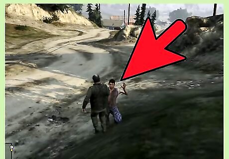 Talk to Maude Eccles as Trevor. Her location appears on your map as an orange question mark in Grapeseed, which is east of Trevor’s safehouse in Sandy Shores. After you speak to her, check your phone to find the email she sent you. It will contain the name of the target and a photo of their location. Capturing targets is easiest with a Stun Gun, though it isn’t required. Trevor can acquire a Stun Gun by completing the first “Abandoned Vehicle” random event. To do this, you must use Trevor’s Rampage special ability to slow down time and kill the person inside the abandoned vehicle before they have time to use the Stun Gun on you. Afterward, you can pick up the Stun Gun and keep it. The first target, however, is easiest to capture using a sniper rifle. Purchase one from an Ammu-Nation, or if you already have one, equip it once you reach the destination. If you don’t have a Stun Gun, running into a target or shooting them non-lethally will cause them to surrender. Having a high-level stamina stat will make it easier to chase after targets on-foot. Running, cycling and swimming increases your stamina.