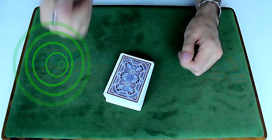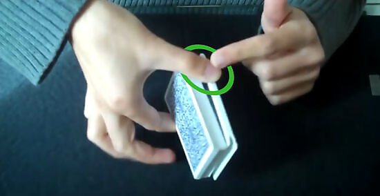 Cut the aces into the middle of the deck and then step back. Tell the viewer that the work is now happening, or that you only have to snap your fingers, etc. No matter your version of showmanship, back yourself away from the deck to show them you're not involved in any way. The sandwiched aces are in the middle of the deck.