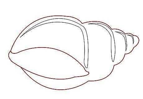 Start with the shell. Draw a circle with one bottom edge coming in a little. Next draw a swirl in the middle.