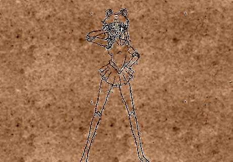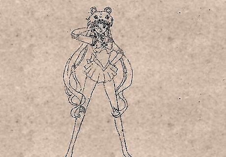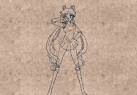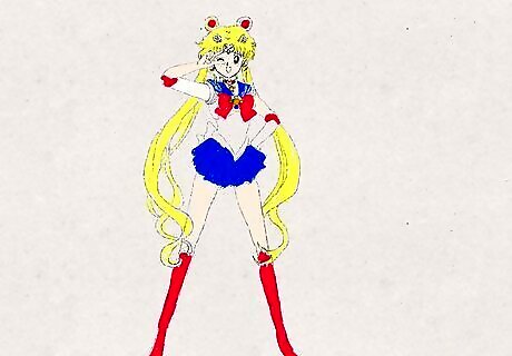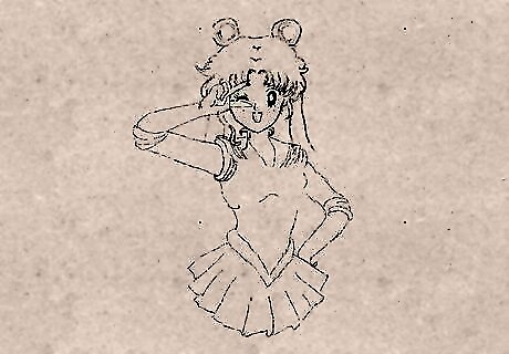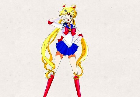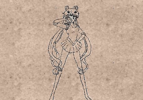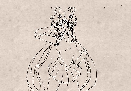 Draw her hair. Sailor Moon has a unique hair style. Two dumpling (odango) like circles in her hair and a very long hair strap under it with multiple strands.