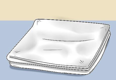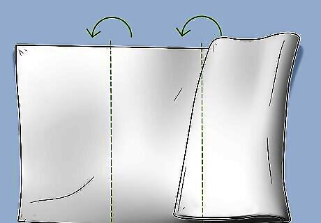 Fold the fabric in half, twice. Put the fabric down on the floor so that it looks like a vertical rectangle. Fold it in half horizontally so that you end up with a square. Then, with the folded part on top, fold the fabric in half vertically. You should end up with a rectangle shape, two folded parts: one on the top, and one to the side.