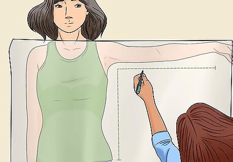 Take your measurements using a measuring tape. This will help you determine how long to make the dress and sleeves. It will also help you determine how much fabric to buy. Here are the areas you should measure: Shoulder to floor. This is your "height" measurement. Wrist to center of chest. This is your "arm" measurement. Nape to waist. This is your "back" measurement.