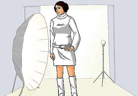 Consider creating a modern version of Princess Leia. If you want a Princess Leia-inspired outfit, consider going for a simple, white dress, tall white boots, and a silver belt. Finish off the look with Princess Leia makeup and buns.