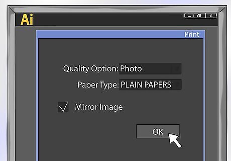 Once you are happy with the position of you logo / logos you are ready to print your artwork. Generally for most good quality sublimation paper you don't require a lot of ink to be laid down on the sublimation paper. If you are using an EPSON printer good setting to start with are Quality Option: Photo, Paper Type: PLAIN PAPERS, under the Page Layout Tab make sure the Mirror Image check-box is ticked. Click OK then the Print Button and then the Print button again in the Illustrator Print window.