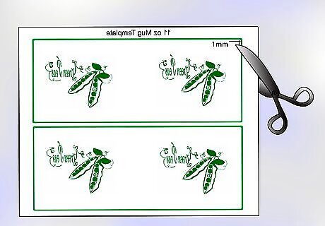 Next step is to cut out your designs with your scissors or art knife and ruler. Cut about 1mm inside of the magenta cut-line. don't leave any of the magenta line on the paper of it will print on your mug.