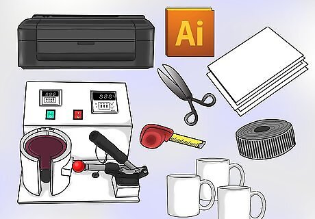 Make sure you have what you need. The items needed are, the following: inkjet printer with sublimation inks installed, graphic art software like Adobe Illustrator or Coral Draw, sublimation paper, mug heat press, pair of scissors or art knife and a ruler, heat tape and a few blank sublimation mugs.