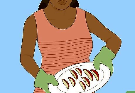 Bake the apple. For a delicious apple treat that is easy to chew, try baking sliced apples in the oven for about 30 minutes. Enjoy while still warm. Baked apple is especially delicious when topped with a little bit of cinnamon. You can also microwave your apple slices for a few minutes for similar results without the wait.