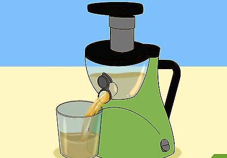 Juice the apple. If you're craving an apple, but your mouth hurts too much to eat anything, you can still enjoy some delicious apple juice! Buy some at the store or make it at home. If you have a juice extractor, all you need to do is cut up your apples and feed them into the machine. Be careful not to put your fingers or any foreign objects into the juicer. You can also experiment with adding other fruits and vegetables, like cucumbers, kale, carrots, pineapple, or oranges, to your apple juice. You can invent your own recipes or search online for suggestions. If you don't have a juicer, you can also make homemade apple juice or cider by cooking diced up apples in water on your stove top, mashing the apples with a potato masher, and then straining the liquid. Search online for a recipe so you will be sure to get the proportions right.