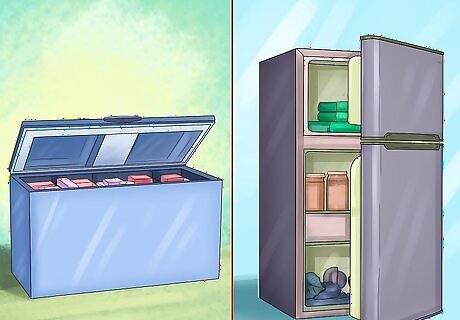 Store perishable foods in the freezer. If you are buying food for 1 to 2 months, preserve perishable food, like produce and meat, by freezing it. Put the food in a resealable bag or airtight container and place it in the freezer. Store perishable foods for up to 1 month in the freezer. Store semi-perishables like potatoes and onions in the freezer for up to 6 months.