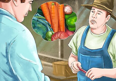 Sign up for a community supported agriculture (CSA) program. In a CSA program, you pay a local farmer at the beginning of the season for a share of their crop that year. Each week, the farmer will fill up a box with different organic fruits and vegetables for you to try. Not only will a CSA program help you get organic produce, it will also help support a local farmer.