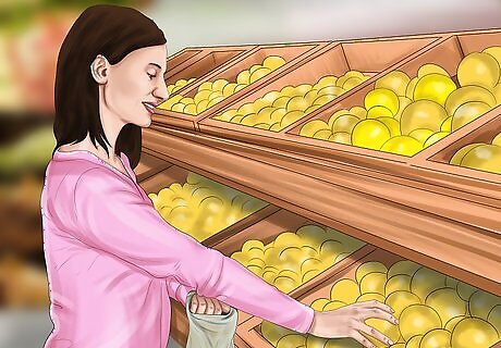 Stick to seasonal produce. Seasonal produce is typically cheaper, whether it is organic or not. Buy produce that is in season to reduce the cost of buying organic produce. Fruits and vegetables in season during the fall are acorn squash, broccoli, Brussels sprouts, cauliflower, garlic, pears, pineapples, and crab apples. Fruits and vegetables in season during the winter are clementines, grapefruit, kiwi, sweet potatoes, collard greens, and buttercup squash. Fruits and vegetables in season during the spring are artichokes, asparagus, broccoli, corn, spinach, mangoes, pineapple, peas, and strawberries. Fruits and vegetables in season during the summer are cucumbers, bell peppers, blackberries, blueberries, cherries, eggplant, green beans, tomatoes, and okra.