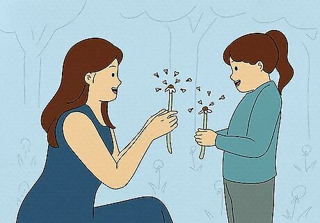 Go on nature walks. Walking around outdoors offers endless opportunities to encourage your child’s curiosity. You can look for animal footprints, birdwatch, identify different types of plants, and look for bugs. Bring a guidebook with you to help you identify things that you find on your walk. While your walking, ask your child questions about what they’re seeing and doing: “What do you think…? What else might be affected…? What do you think happened here? What would happen if…? How can we find out more?”