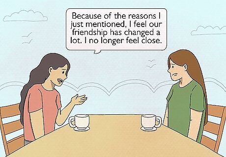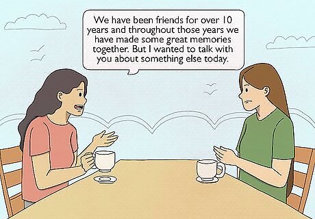 Start on a positive note. Start by recounting the good times you and your friend have had together, even if the relationship has taken a turn for the worse more recently. Then begin to tell your friend what you rehearsed earlier that week. Alternatively, start with small talk by asking them how their week went before launching into your speech. You could start by saying, “We have been friends for over 10 years and throughout those years we have made some great memories together. But I wanted to talk with you about something else today.” You could also say, "You have been a great friend to me over the years, and I am really grateful for that. However, we have been fighting a lot lately, and I don't think that is going to change any time soon." Try saying, "Our friendship has meant a great deal to me over the years, but I think we are starting to grow in different directions."
