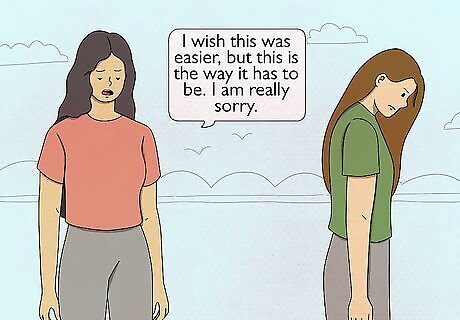 Give them space. Once you are finished, give your friend a couple minutes to process everything. Step away and give them space so they can gather their thoughts. Understand that they will be feeling vulnerable and hurt. If they have something to say, listen to them and tell them you understand that they are feeling mad or sad, or both. For example, “I understand you are feeling mad. This is really hard for me too.” You could also say, "I wish this was easier, but this is the way it has to be. I am really sorry."