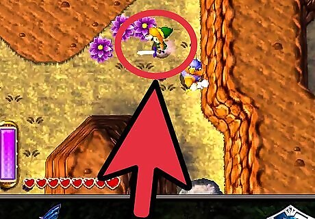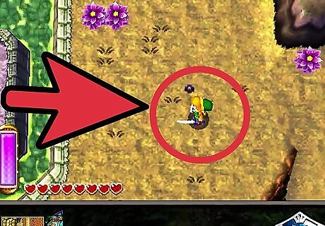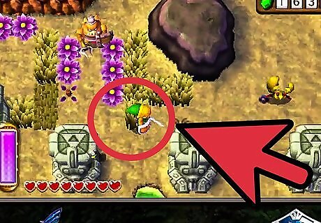 Leave the house and head for a big patch of grass. You will find it in the lower left corner of Kakariko Village. Cut the grass by swinging your sword. Hopefully, a bee will appear.