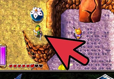 Run south of Kakariko Village to find the mini-game. Also, make sure that you have 50 rupees because that is what it costs to play. Rupee Rush is a mini-game that Link can partake in. The goal is to collect as many rupees as possible within 30 seconds. However, the game will not inform you of how much time you have remaining. So, for this method to work, you will need a stopwatch. Most people just use the stopwatch on their smart phone. In Lorule, the mini-game is located south of Thieves' Town and costs 100 rupees to play.