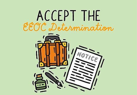 Accept the EEOC determination. Once the investigation is completed, the EEOC will decide either to dismiss the case, attempt settlement, or file a lawsuit. The agency could dismiss the case for any number of reasons, including the fact that it was filed too late. If the agency dismisses the case, you will be given a Notice of Right to Sue, which will give you permission to file a lawsuit in court on your own behalf. If you receive a Right-to-Sue letter, you will need to file your lawsuit in 90 days.