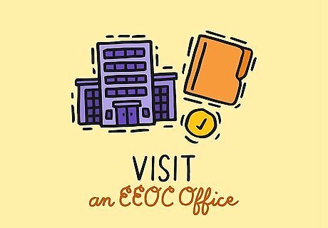 Visit an EEOC office. You can file your complaint (called a “charge”) at any EEOC office, but the complaint will be investigated by the office closest to the location where the event occurred. You can also file your complaint by mail. To find your nearest EEOC office, visit this page and enter your zip code. Walk-in service is available. However, you should probably call the office and set up an appointment.
