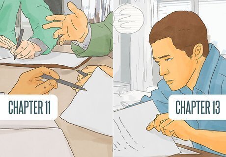Identify the different business bankruptcies. There are three primary types of business bankruptcies. Not all are available to every business. Furthermore, these bankruptcies have key differences regarding whether you must sell your assets. Chapter 7. In a Chapter 7, your business will be liquidated. This means a bankruptcy trustee will sell your business assets and use the proceeds to pay back your creditors. After liquidation, your business cannot continue. A chapter 7 is available for sole proprietorships, partnerships, corporations, and other business entities. Chapter 11. In a Chapter 11, you can continue your business. It is called a “reorganization.” You must come up with a plan for how to pay your creditors, which the creditors then vote on. Under a Chapter 11, you can pay back creditors over an extended amount of time. This bankruptcy is available for sole proprietorships, partnerships, corporations, and other business entities. It is a very complex bankruptcy to file and is mostly used by large, publicly-traded companies. Chapter 13. In a Chapter 13, you file a repayment plan with the court. The amount of money you must repay creditors will depend on how much you owe and the amount of property you have. A Chapter 13 is available only for sole proprietorships. Unlike a Chapter 7, your assets are not sold. To qualify for a Chapter 13 as a sole proprietorship, you must not owe too much debt. As of 2016, you must not owe more than $394,725 in unsecured debt or more than $1,184,200 in secured debt. If you do, you must file Chapter 11 if you want to reorganize.