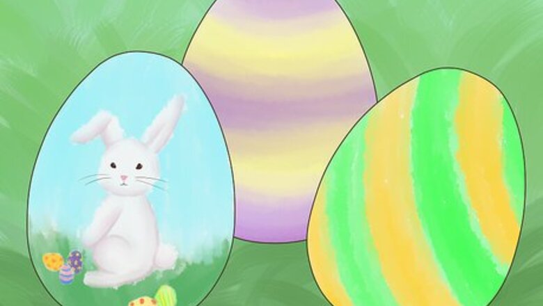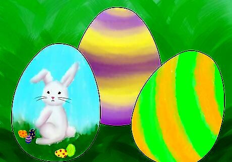 Use dyed Easter eggs. Many kids prepare their own hype for the holiday by dyeing and decorating hard boiled eggs with their parents the previous night. Stick about three to four refrigerated eggs around their basket and encourage your child to eat them later on.