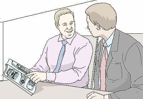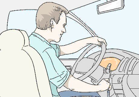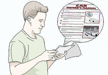 Open the hood to access the engine bay. Pull the hood opening lever inside your car. It is located on the driver’s side, typically below the dashboard and near the door. After popping the hood, get out of the car and lock the doors. Prop up the hood so you have a clear view of the engine. Locking the doors is useful to prevent anyone from accidentally turning on the car while you’re working. If you have an electronic engine starter, set it in a secure spot away from the car as well.