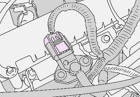 Pull the turbo sensor plug out from its connector. Check the top edge of the plug for a small tab. Grip the back end of the plug while holding the tab down with one finger. Then, pull the plug away from the connector. The tab disengages the plug, so it will slide straight off the connector. Be gentle with the plug to ensure the tab doesn’t break. If it feels stuck, don’t force it. Make sure you have the tab pressed down, then pull out with firm pressure. If the plug is unreachable, you may need to disconnect some other parts first. Sometimes the air filter and intake tube are in the way, for instance, and can be unscrewed with a socket wrench.