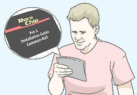 Locate the common rail sensor if you have a diesel engine. Every diesel engine has a metal tube in its center. The tube is known as the common rail and is easy to spot when you’re looking down from above. One end of the rail will have a round plug on it, which is where the Racechip’s connector is meant to fit. For some cars, the plug will be in the center instead, so check there if you don’t see it on the ends of the rail. One way to find the sensor is by following the fuel injection line running from the fuel tank to the engine. The rail will have a large, plastic ring called a union nut nearby. The nut allows you to easily pull the plug off the sensor. Consult the manufacturer’s instructions for more information. It will have a picture showing where the sensor is on your specific vehicle model.