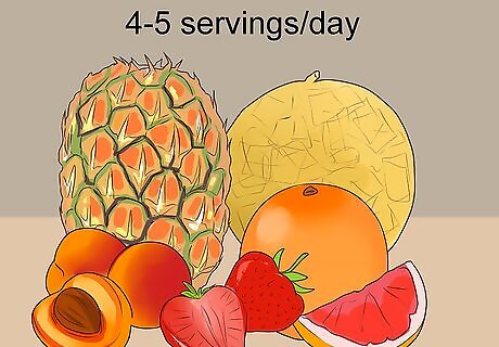 Consume 4 to 5 servings of fruit daily. Fruit consumption is an important part of the DASH diet. Fruits contain important vitamins and minerals that improve your health and cardiovascular function. They are important sources of magnesium, potassium, and fiber. Examples of a serving include 1 medium-sized fruit, ¼ cup dried fruit, or ½ cup fresh or frozen fruit counts for 1 serving. Apricots, pineapple, melons, strawberries, and grapefruit are all good choices.