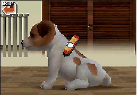 Tap the "care" button. Look for the Natural Dog food bag and milk, and give it to your dog. Note that this will give them more energy than dry food and water.