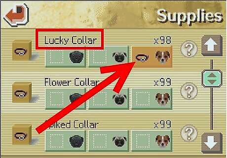 Go to your supplies. Tap the "accessories" button. Look for the lucky collar and use it. The lucky collar can be found on walks.