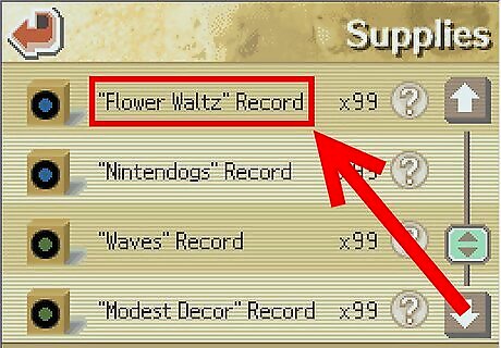 Tap the "supplies" button and open up the music option. Look for "Waltz of the Flowers". Once you have found it, play the entire record and wait until it's finished.