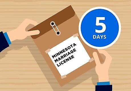 Determine if you are eligible to marry in Minnesota. Before you can get your marriage license and married in Minnesota, figure out if you are eligible to marry under the state’s laws, which can vary slightly by county. This will ensure that you don’t encounter any problems or delays in getting your license. Minnesota does not have a residency requirement. Neither you nor your partner may be married to another person when you apply for your license. If you are widowed or divorced, you must provide proof of your former spouse’s death or of your divorce. You must be 18 years of age or older to get married in Minnesota without parental consent. Sixteen and seventeen year olds may apply for a marriage license when a parent, court, or guardian consents. No one under the age of 16 may marry in Minnesota. As of 2015, same sex marriage is legal in all 50 states. Minnesota prohibits marriage between family members who are related wholly or partly by blood or adoption. This law also prohibits marriage between cousins. There are exceptions to this rule for some aboriginal cultures. Any person who is developmentally disabled may marry only with consent by the commissioner of human services. For questions on specific laws in the county in which you will marry, contact a Minnesota County Registrar. You can find a comprehensive list of Minnesota County Registrars at http://usmarriagelaws.com/search/united_states/minnesota/marriage_license/#registrar.